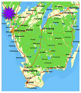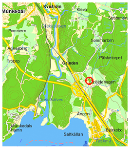 Från E6:an, både söderifrån och norrifrån, tag av avfart 98 märkt Saltkällan. Kör sedan mot Munkedal i första rondellen.